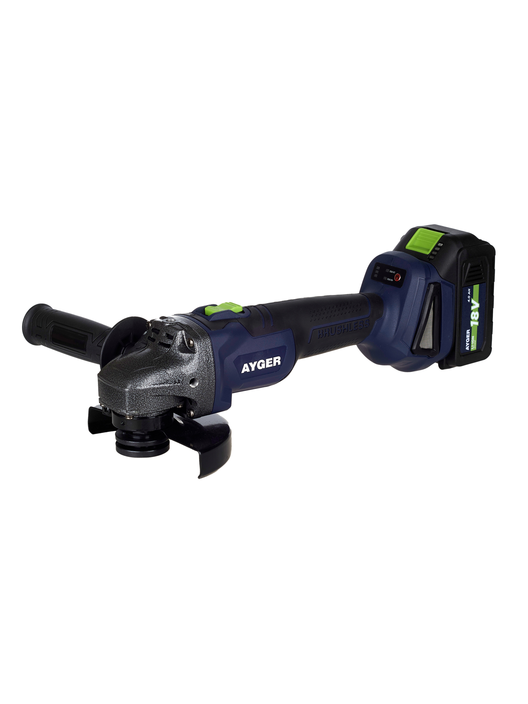 AYGER Машина углошлифовальная аккумуляторная бесщеточная AG18BL4 (с двумя аккумуляторами 4Ah )