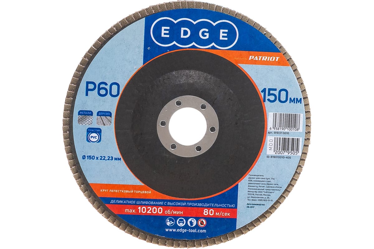 Круг лепестковый торцевой Edge by Patriot 150мм*22,23мм*P60